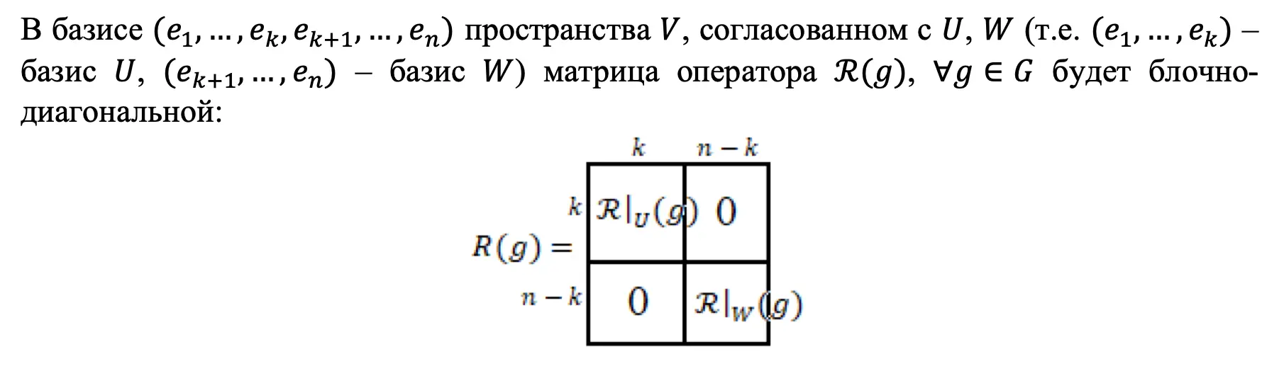 [!Приводимые, неприводимые и вполне приводимые представления]- Более подробно см. Вполне приводимые представления