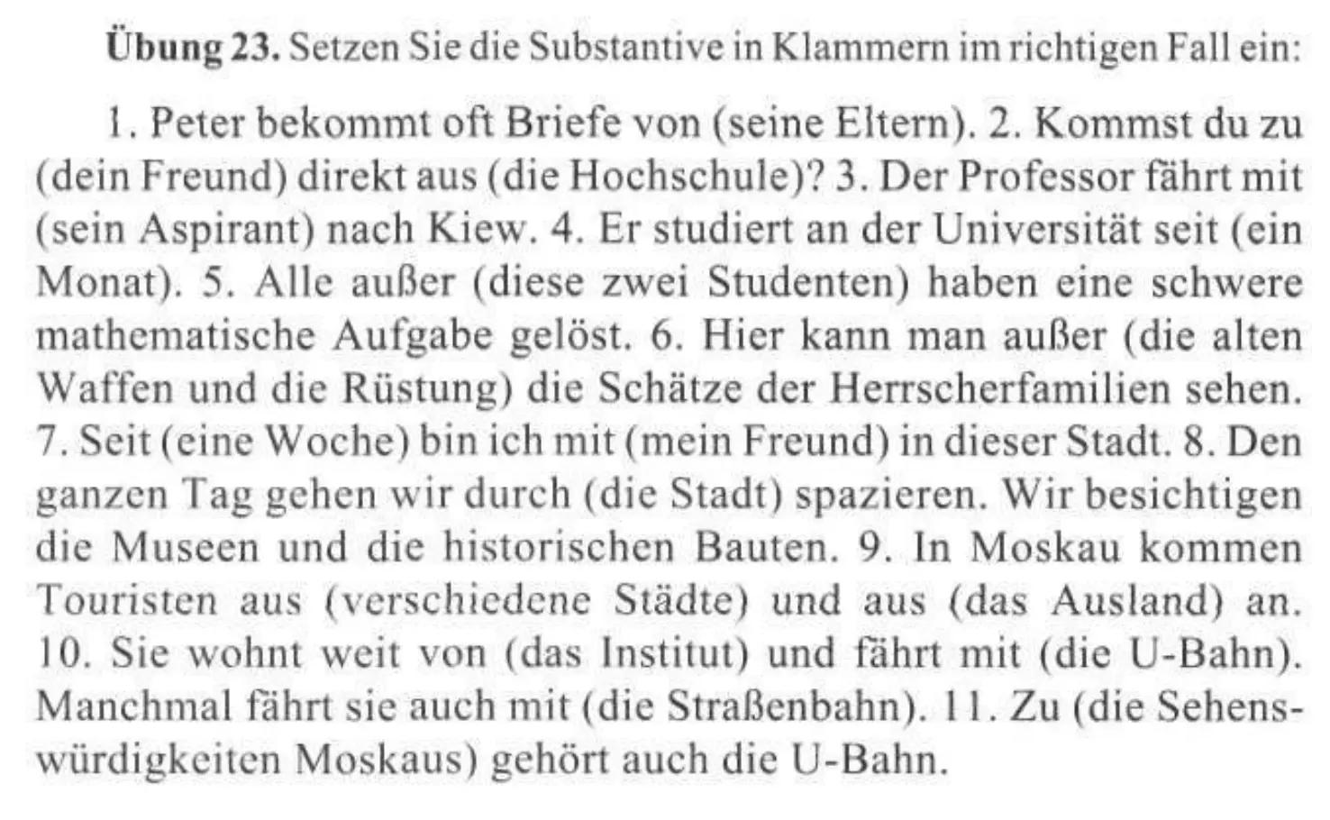→ Ты идёшь к своему другу прямо из вуза? → Дательный падеж после zu и aus. -