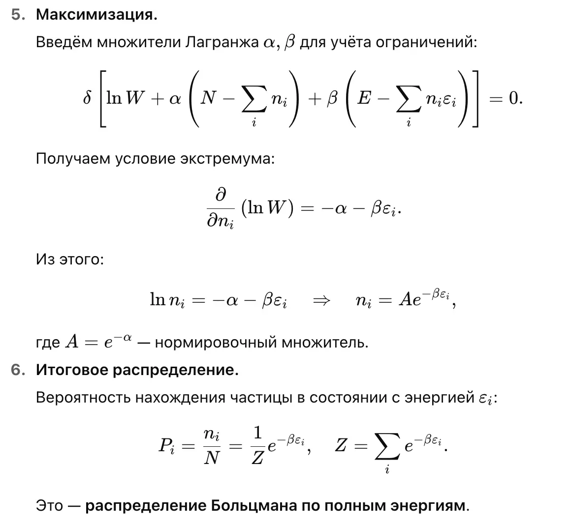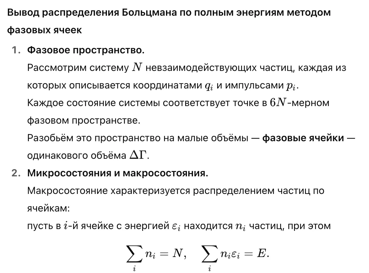 Вывод распределения Больцмана по полным энергиям методом фазовых ячеек