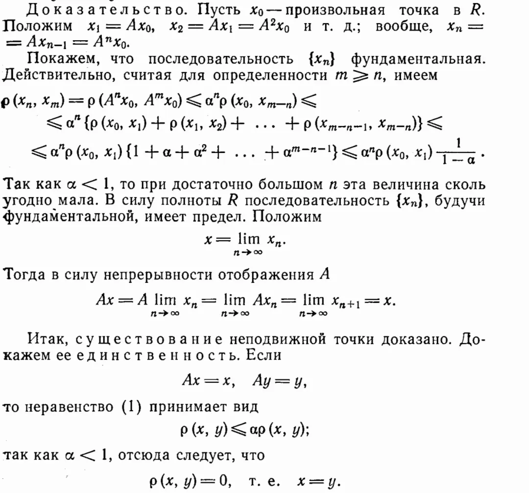 Всякое сжимающее отображение, определенное в полном метрическом пространстве , имеет одну и только одну неподвижную точку
