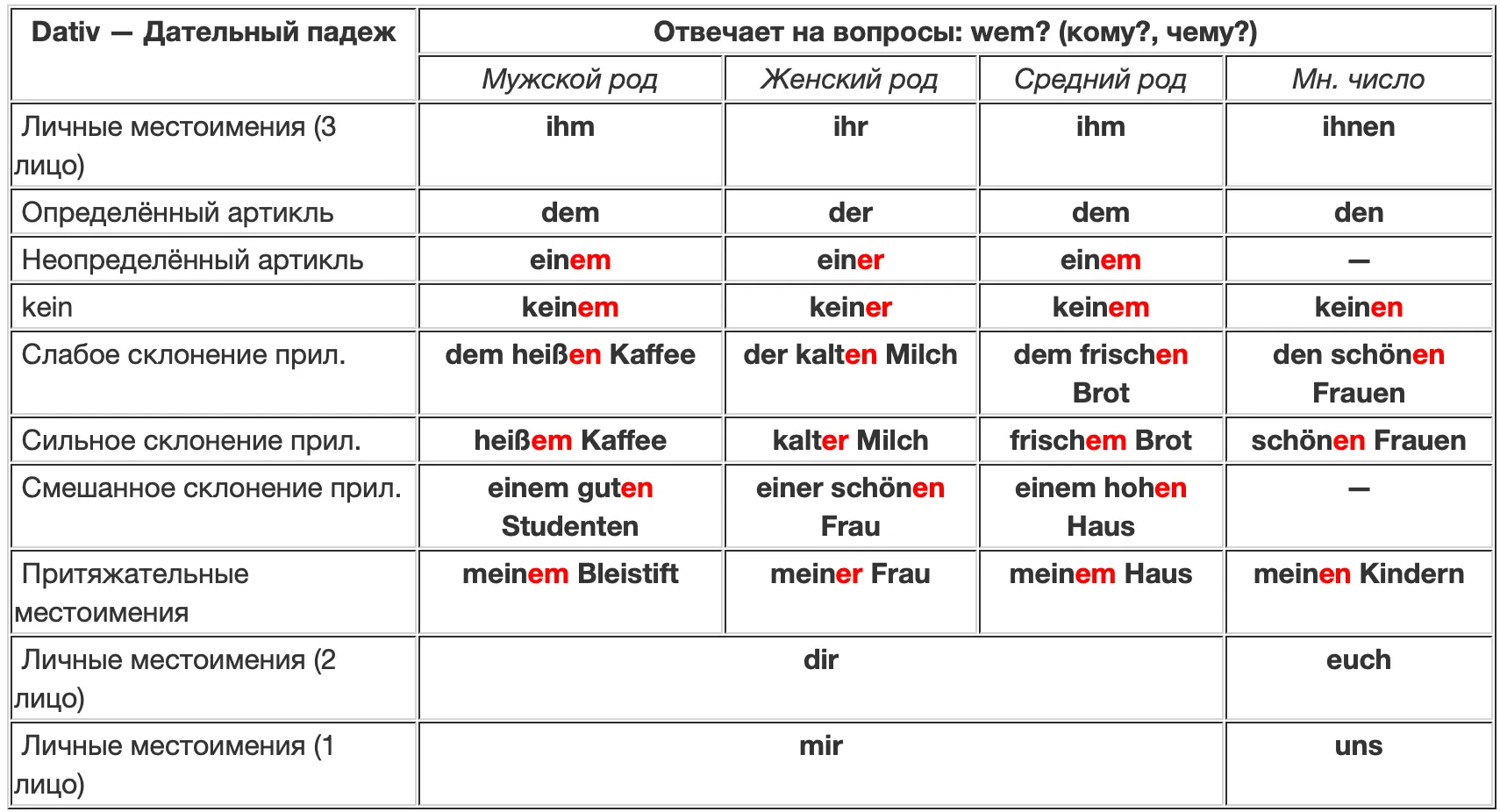 Дательный падеж (Dativ)