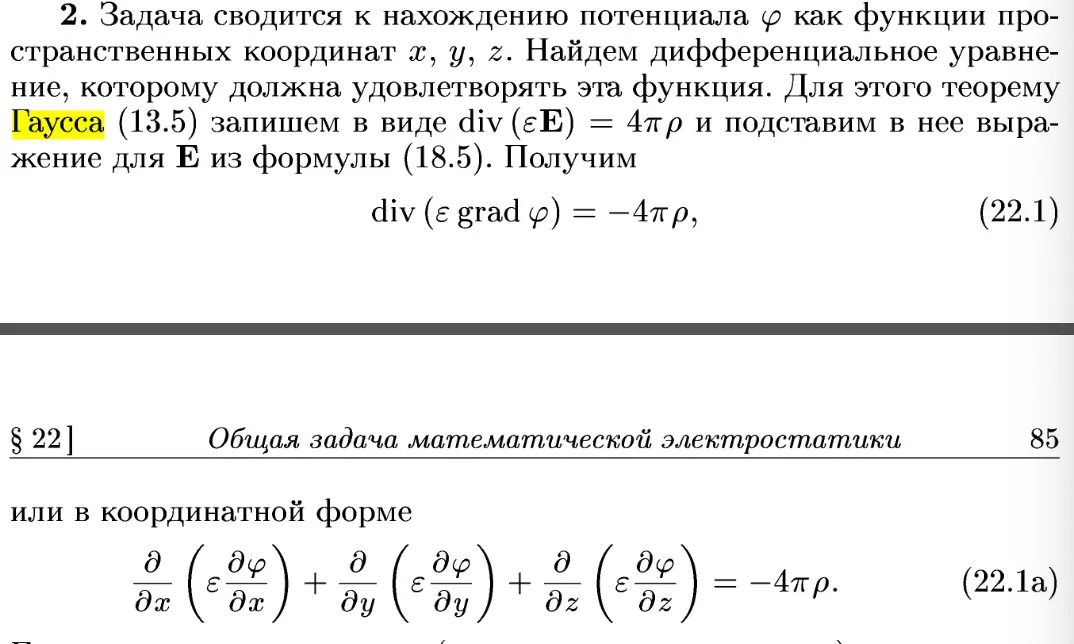 Вспомним теорему Гаусса для диэлектриков и воспользуемся формулой Остроградского-Гаусса. #TOBO Уравнение Пуассона: При получаем уравнение Лапласа: