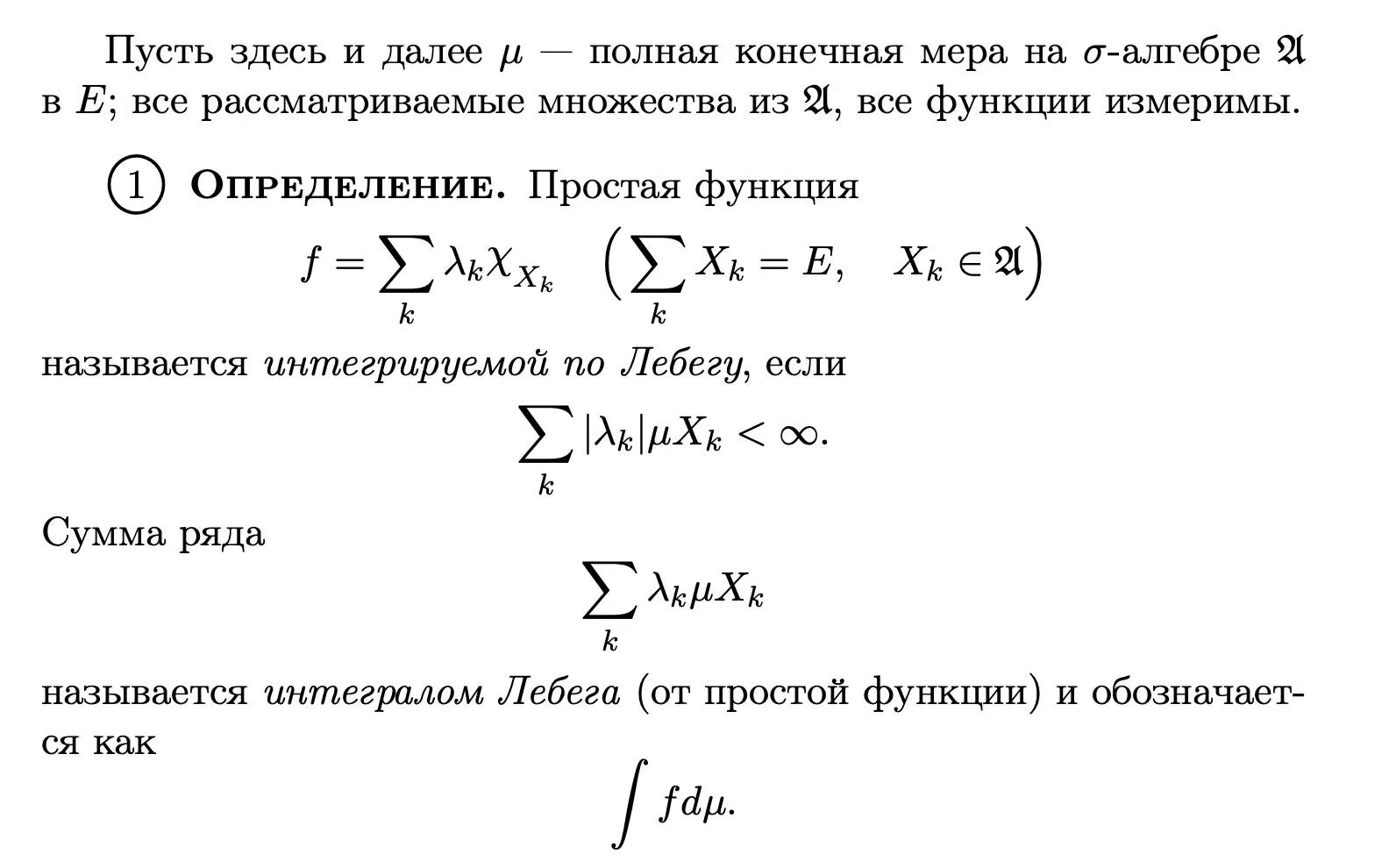 Интеграл Лебега определяется пошагово.
